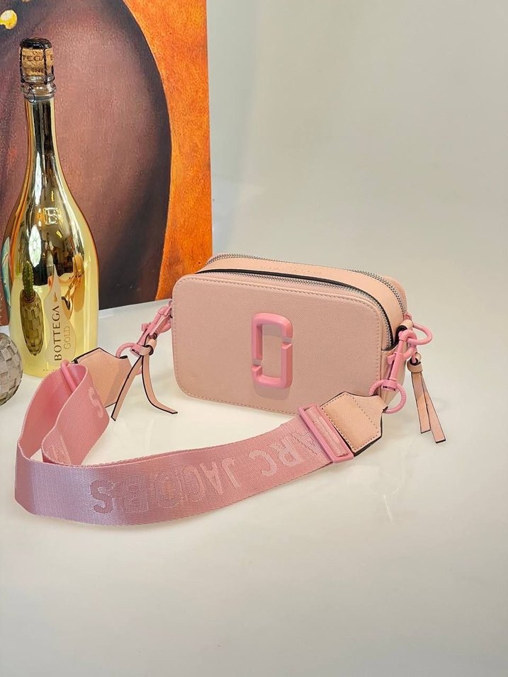 Pastel pembe deriden yapılmış, tokalı ve desenli kadın çapraz çanta, trend sokak stili için uygun.