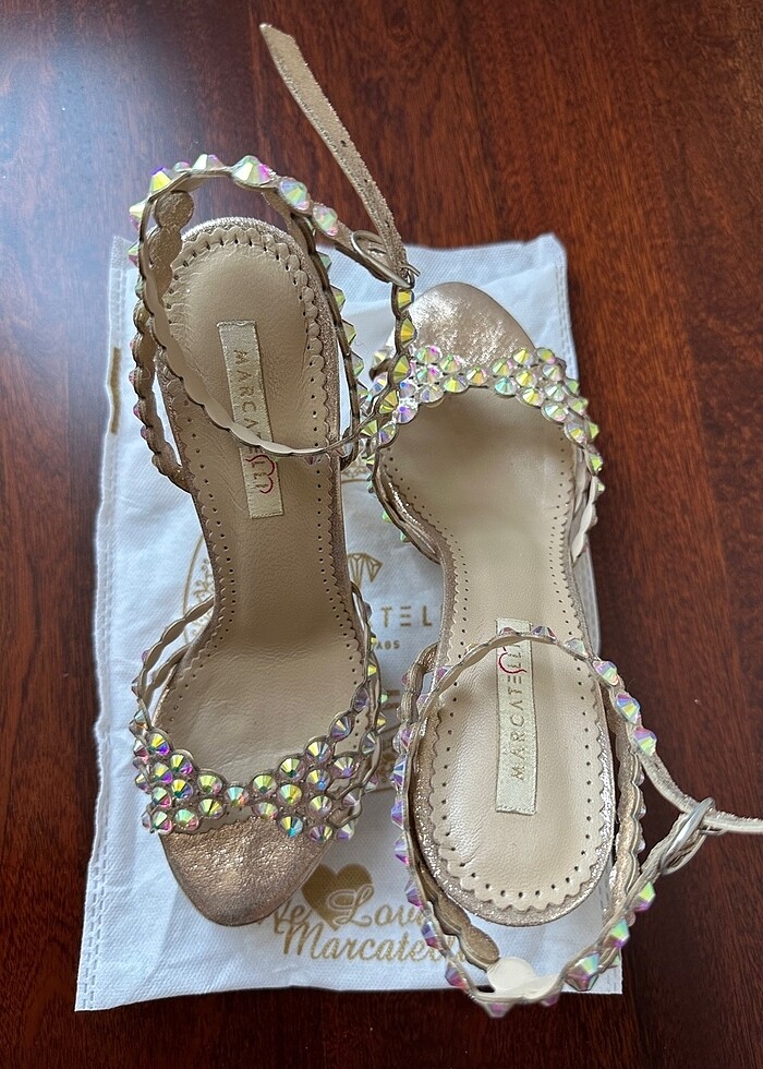 Marcatelli alise gold platform topuklu taşlı ayakkabı