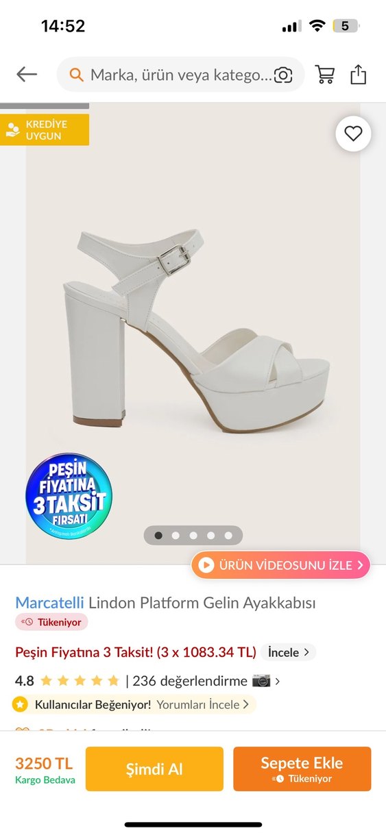 Beyaz platform topuklu gelin ayakkabısı, tokalı ve minimalist çağdaş tasarıma sahip. Kauçuk malzemeden, klasik zarafet için uygundur. Bir kez düğünümde giydim tertemiz yeniden farksız çok rahat hiç rahatsız etmedi sabah 9dan gece 3 e kadar çıkarmadım ve saatlerce oynadım . Anlatıldığı gibi tam bir gelin ayakkabısı . Normalde 37 giyiyorum ama kalıp dar 38 tam oldu .