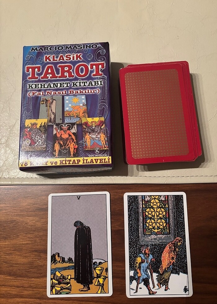Nadir bir tarottur, üretimi yoktur. Kusurları ektedir. 10-11 kartta yüzeysel soyulmalar dışında tam ve temizdir. Bu nedenle daha uygun tutuyorum