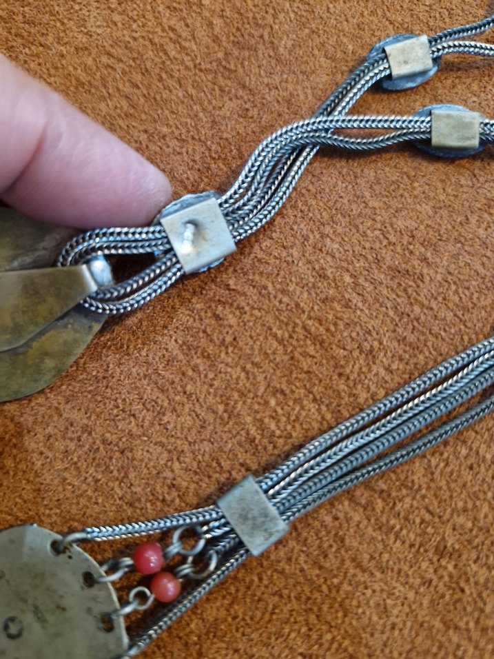 Bohem tarzda, 800 ya da 900 ayar gümüş (damgayı okuyamadım)guherse isciligiyle yapilmis cok eskiden alınıp kullanılmamış bir takım.