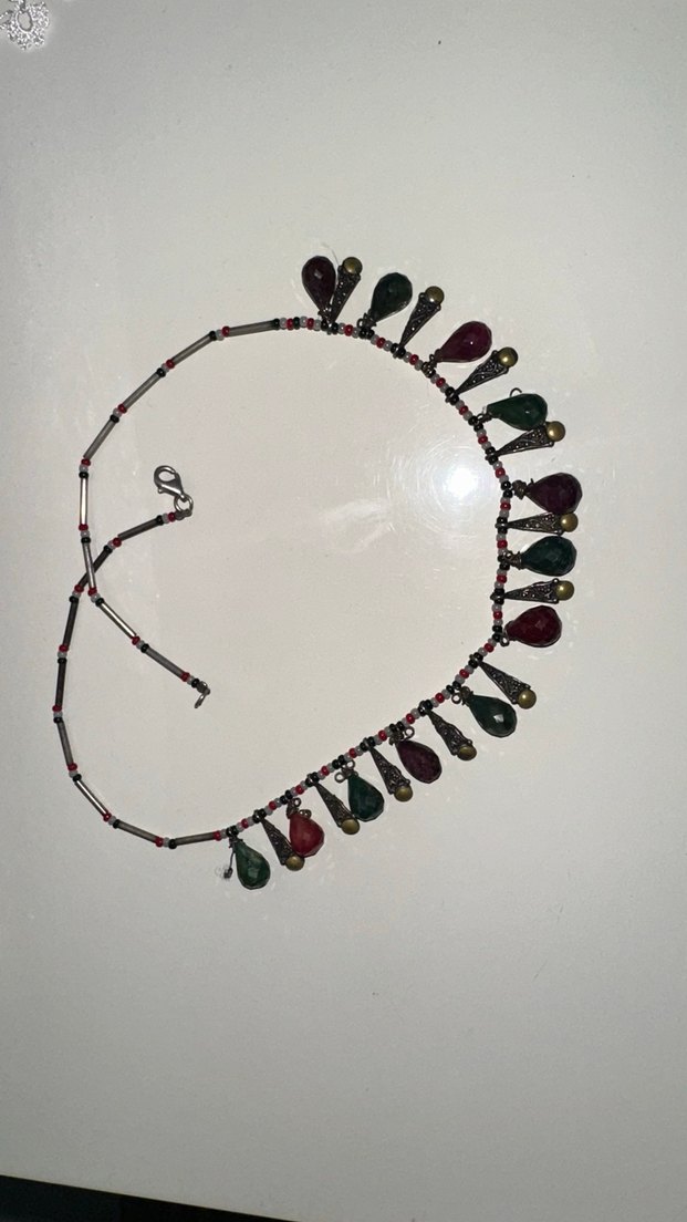 Mardin taşları gümüş Uzun Çok Renkli Boncuklu Bohem Kolye