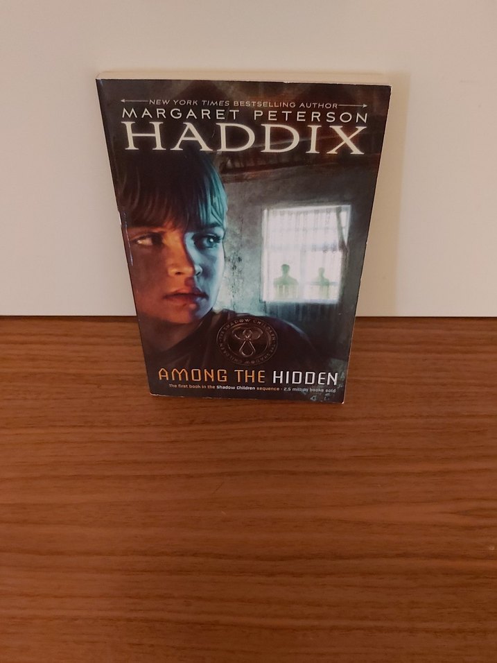 Margaret Peterson Haddix'in Among the Hidden kitabı, gizlilik ve hayatta kalma temalarını işler. Kapakta genç bir çocuk ve arkasında silüet şeklinde bir figür var.