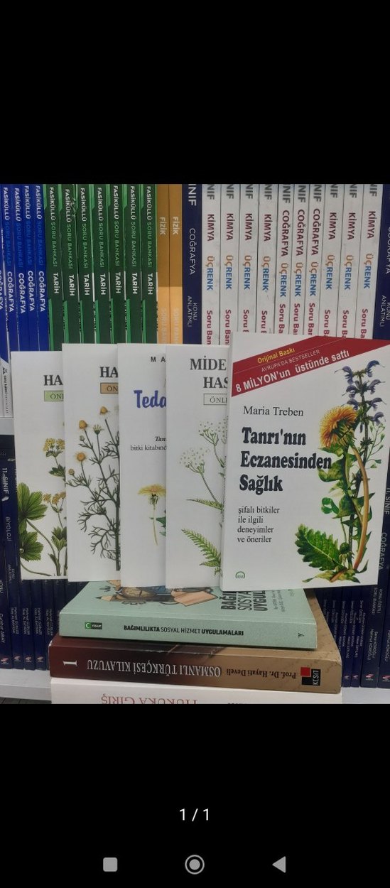 Maria Treben'in "Tanrı'nın Eczanesinden Sağlık" kitabı, şifalı bitkiler ve deneyimler hakkında bilgiler sunar. Kimya ve coğrafya kitapları arasında yer almaktadır.