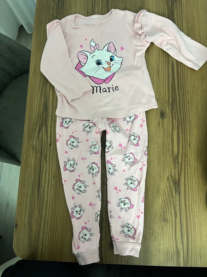 Uzun kollu, bisiklet yaka pembe kız çocuk pijama takımı. Yumuşak, kürk detaylı kumaş ve Marie baskılı deseniyle rahatlık sağlar. 2/3 yaş LCW