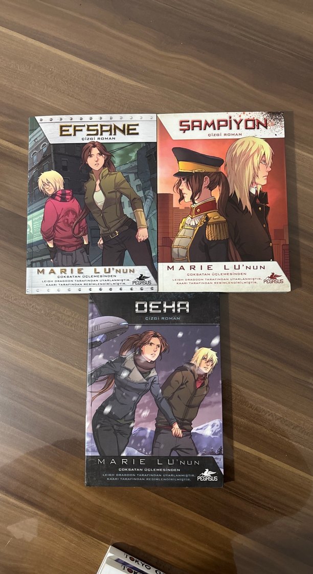 Marie Lu'nun Şampiyon, Efsane ve Deha adlı üç çizgi romanından oluşan set. Her kitap farklı karakterler ve sürükleyici hikayeler içerir.