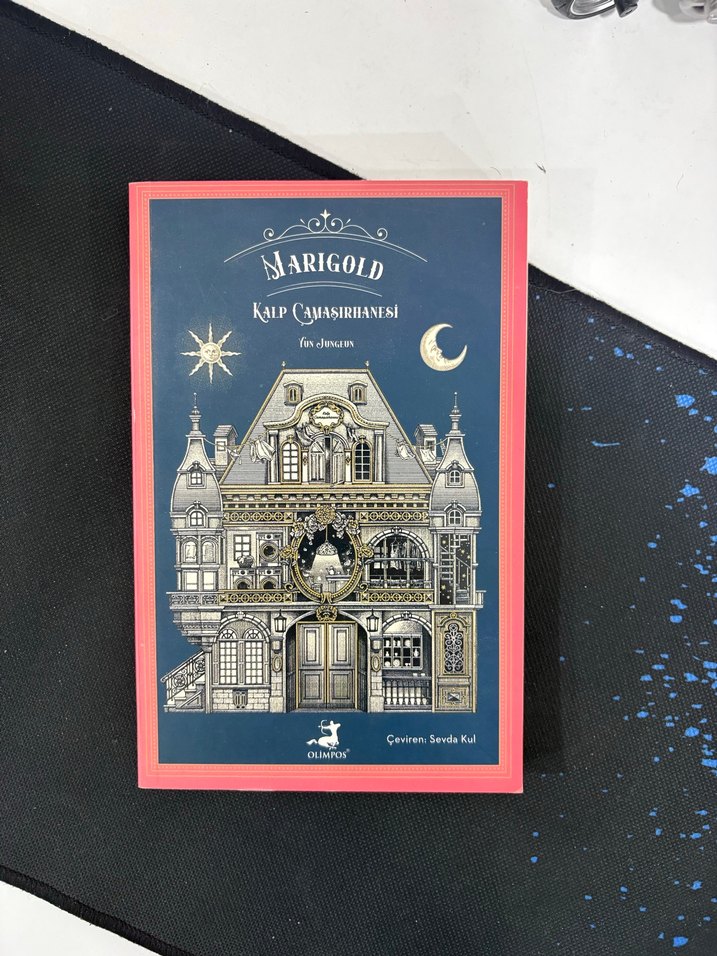 Marigold'un 'Kalp Çamaşırhanesi' adlı romanının kapağında detaylı bir eski bina çizimi bulunuyor, fantastik ve merak uyandırıcı bir atmosfer yaratıyor. Çevirmen: Sevda Kul.