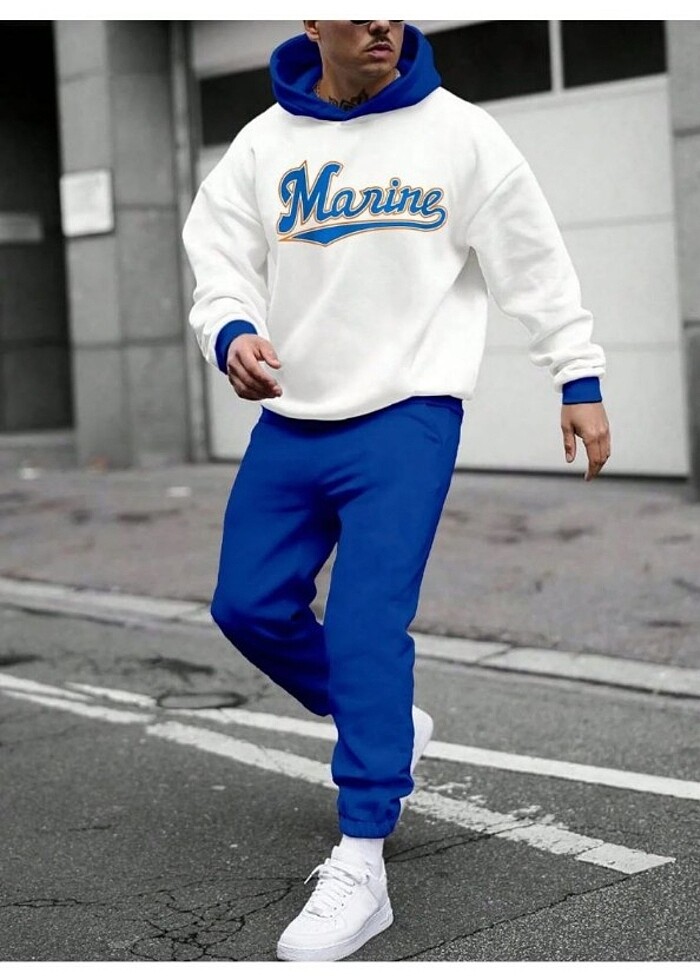 Marine Parçalı 0 Pamuk Eşofman Takımı Beyaz Sax Mavi Baskılı Kışlık Polarlı Orijinal Tam Kalıp S M L XL bedenler Fiyat 599₺ Kargo Ucretsiz Havale Eft
