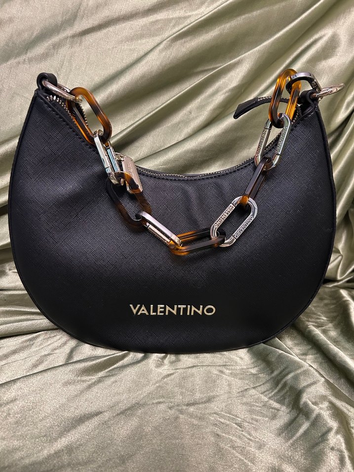 Siyah deri çanta zincir detaylarına sahip. Trendy casual sokak stili için uygun, günlük kullanımda güvenli fermuarlı bölmeler sunar.