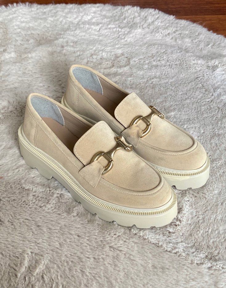 Marjin Bej Süet Kadın Platformlu Tokalı Loafer