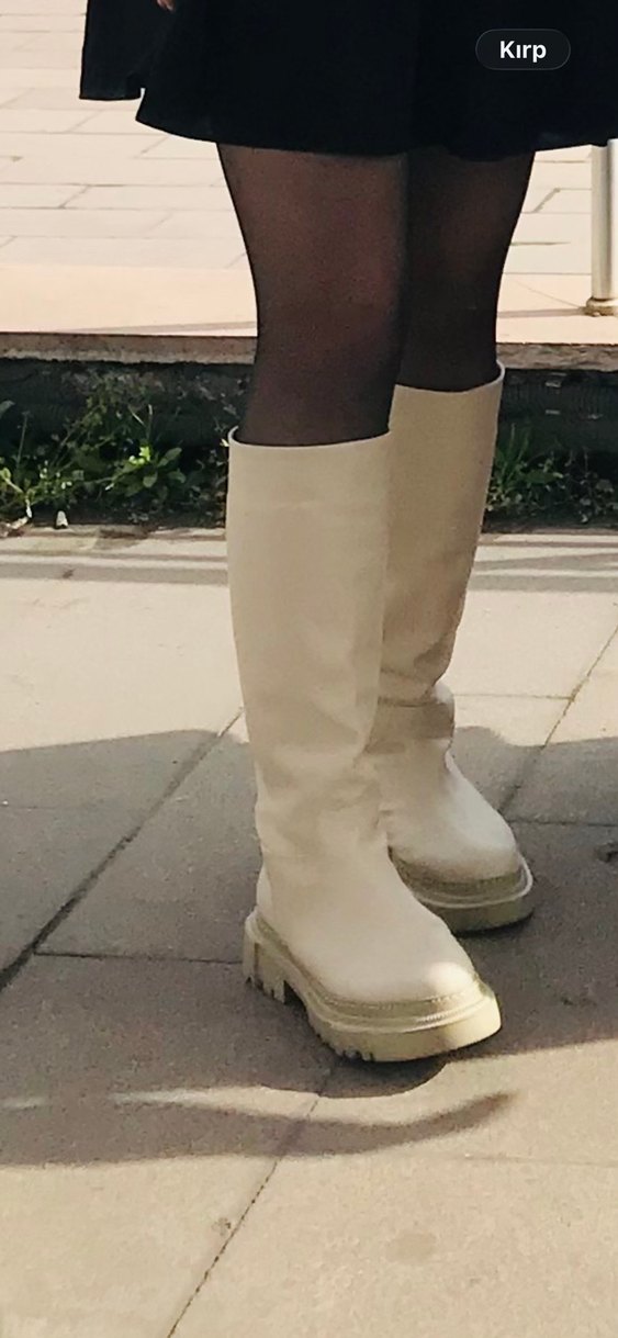Bej renkte kauçuk malzemeden yapılmış, rahat ve normcore tarzda, şık ve gündelik kullanıma uygun marjin kadın çizme.