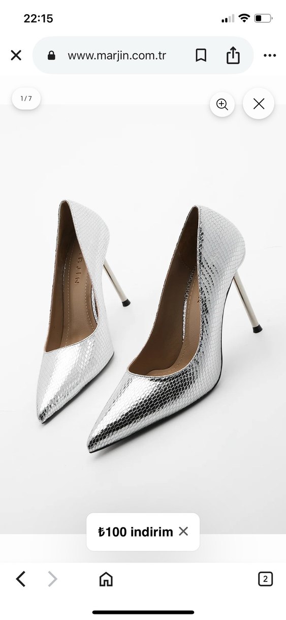 Marjin mağazasından alındı. Gümüş yılan desenli parlak stiletto, metalik ince topuklu. Sadece bir kere kullanıldı. 37 numara