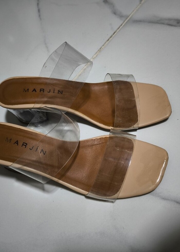 Marjin kadın şeffaf bantlı şeffaf topuklu terlik bi kaç defa kullanıldı üründe herhangi bir sorun yok