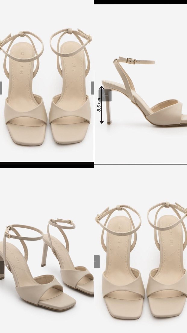 Bej renkte, 8.5 cm topuklu minimal ve çağdaş tasarıma sahip kadın sandaletleri. Yumuşak kauçuk malzemeden üretilmiş, desen içermeyen bu model düğün ve özel günler için zahmetsiz şıklık sunar.