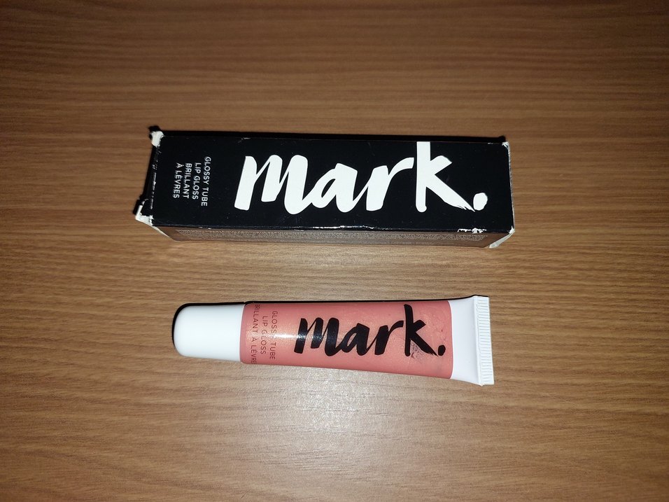 Mark markalı parlak pembe dudak balm tüp içinde, parlak bitişli ve canlı renklidir.