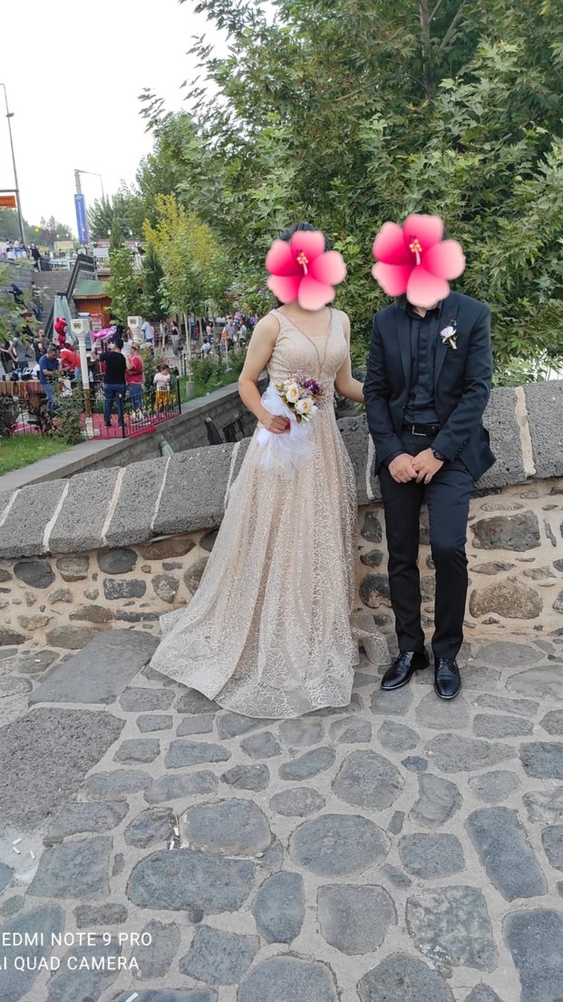 Marka Bej Dantel İşlemeli Uzun Bohem Gelinlik