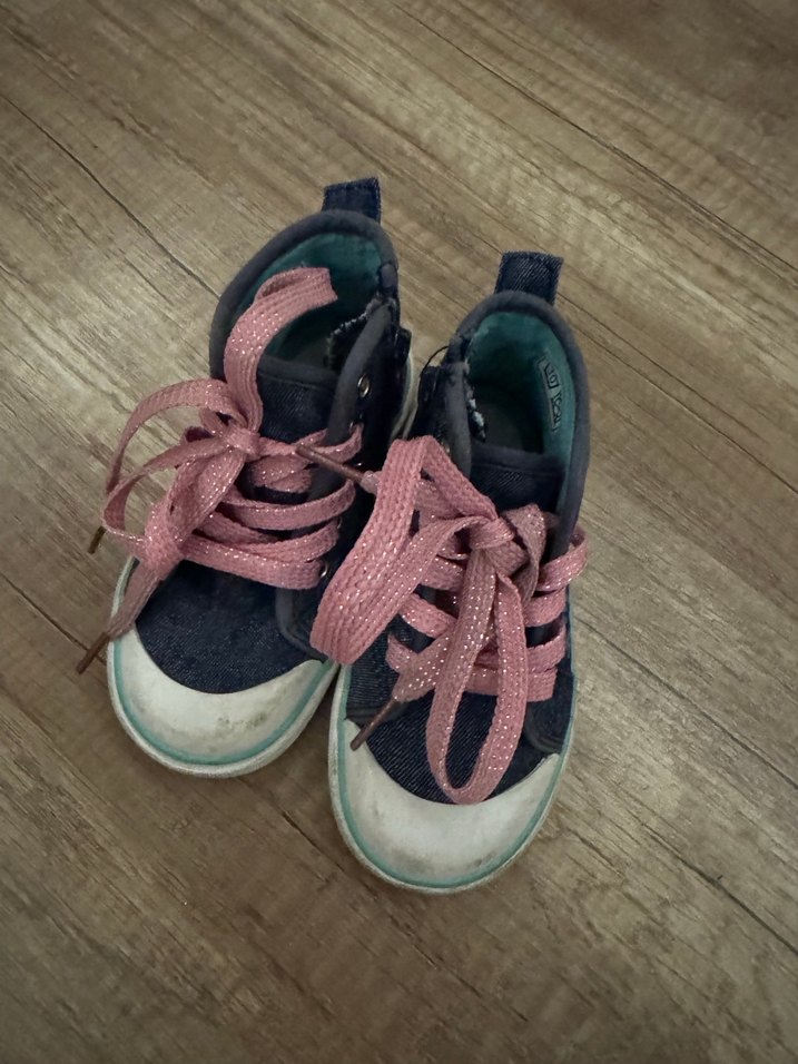 Kız çocukları için gri tabanlı, pembe bağcıklı ve elastik detaylı sneakers. Kauçuk tabanlı, sade ve normcore tarzda.