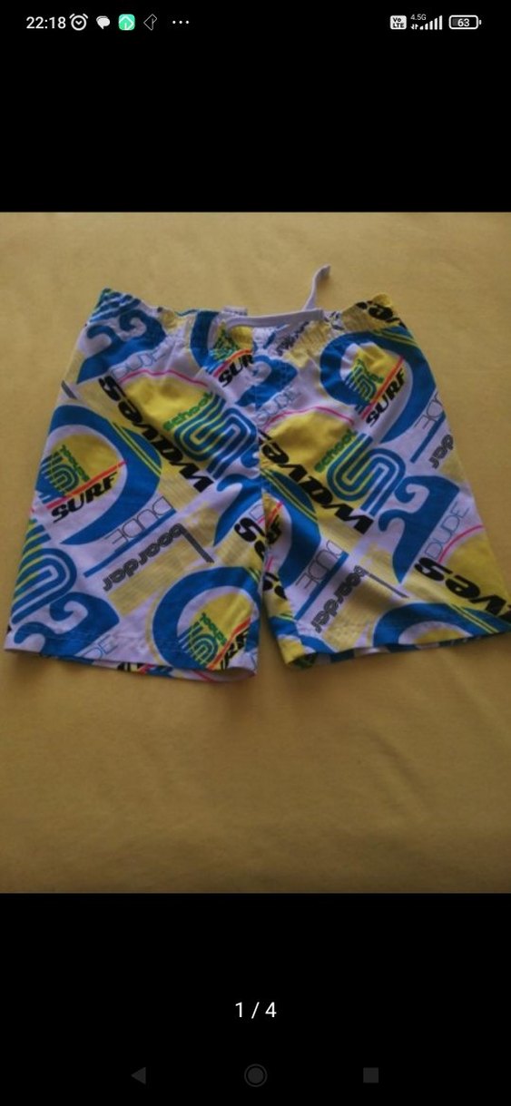 Renkli baskılı, sarı ve mavi tonlarda erkek çocuk deniz şortu. Ayarlanabilir bağcıklı ve lastikli beliyle rahat kullanım sağlar.