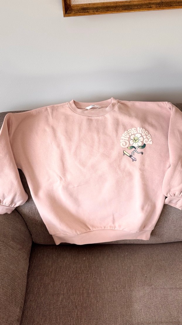 9-10 yaş hediye geldi.Kızım giyer diye etiketini çıkarıp yıkadım fakat hiç giymedi.Yani sıfır tertemiz oversize bir sweatshirt