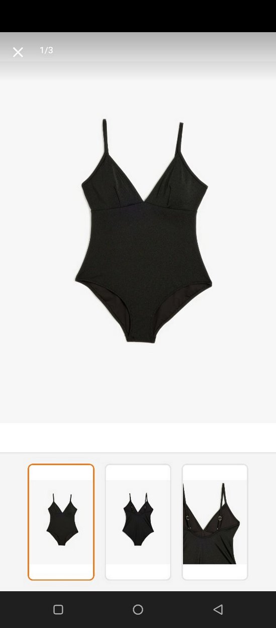 Marks & Spencer siyah, dolgulu plunge V yakalı, askılı, bağlama desenli ve dantel detaylı mayo, cesur plaj tarzı için ideal. ️