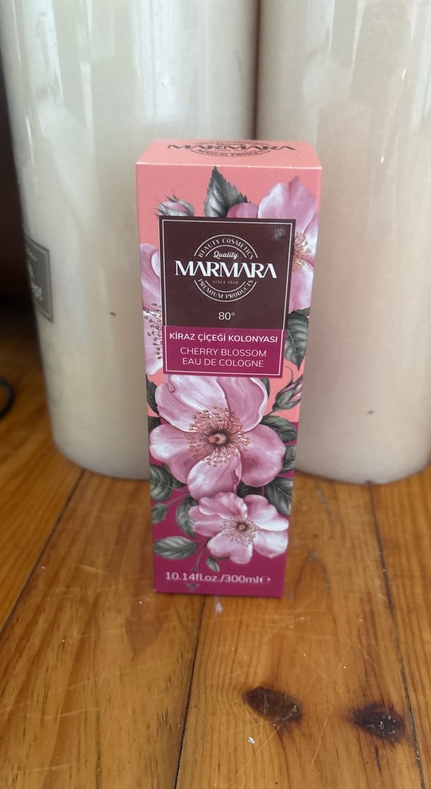 Marmara markasına ait 80° alkollü 300ml Kiraz Çiçeği kolonyası, ferahlatıcı kokusuyla öne çıkar.