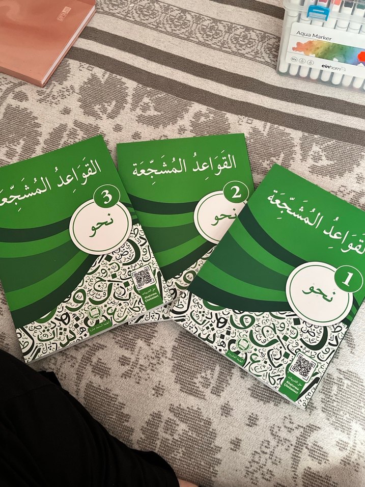 Arapça dil bilgisi kitapları seti, 1'den 3'e kadar seviyeleri kapsar ve düzenli öğrenim sağlar. Nahiv kitabıdır. 1. Kitapta alınan notlar ve yapılan etkinlikler var. 2. Ve 3. Kitap sıfırdır.