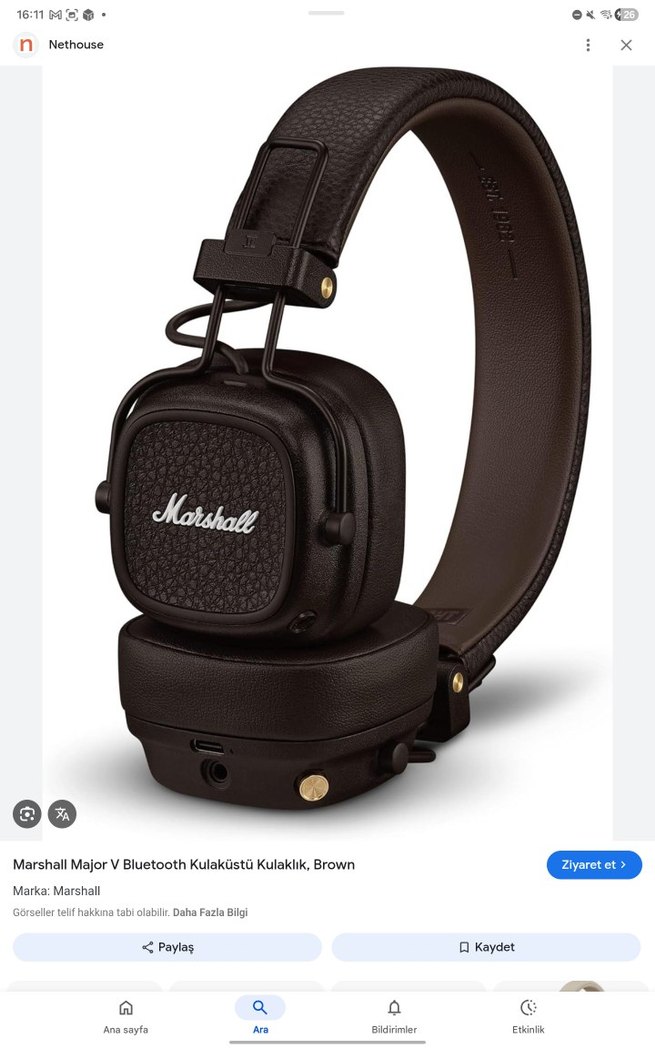 Marshall Major V Bluetooth Kulaküstü Kulaklık Kahverengi