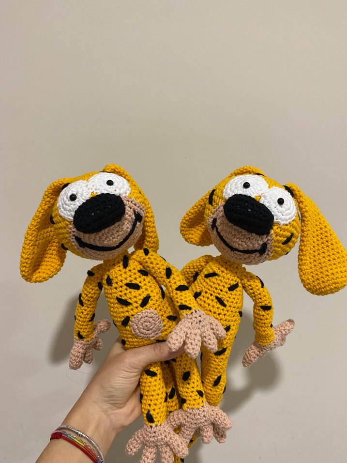 Sarı ve siyah noktalı, çocukluğumuzun kahramanı marsupilami el örgüsü, yumuşak ve renkli peluş oyuncak. Adet fiyatıdır.