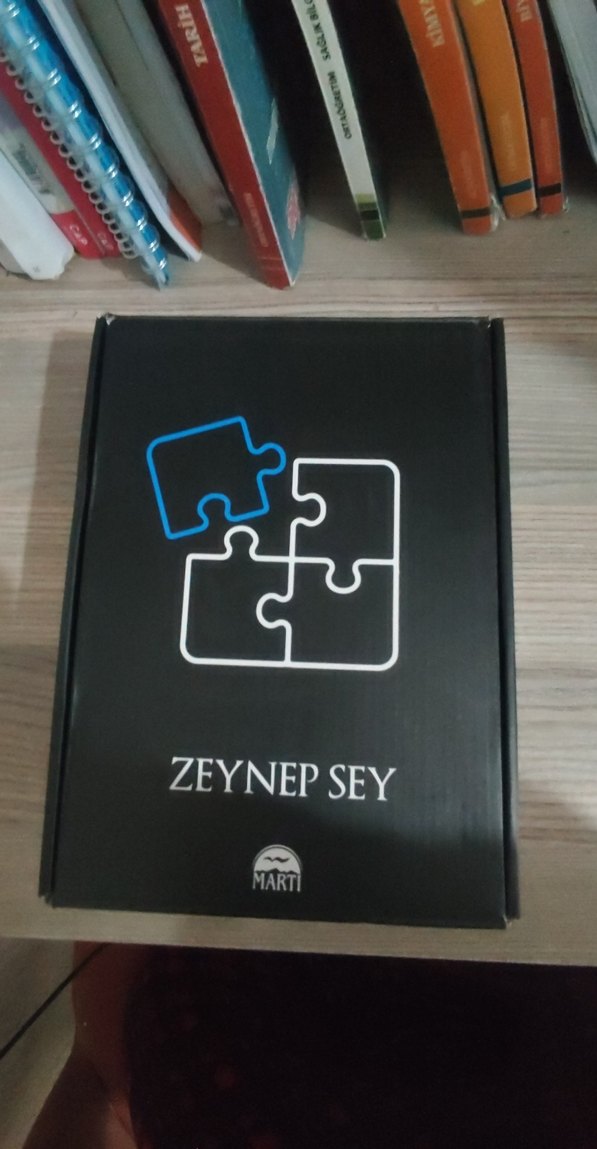 Martı Yayınları tarafından yayımlanan, kapağında yapboz parçası tasarımı bulunan Zeynep Sey'in romanı.