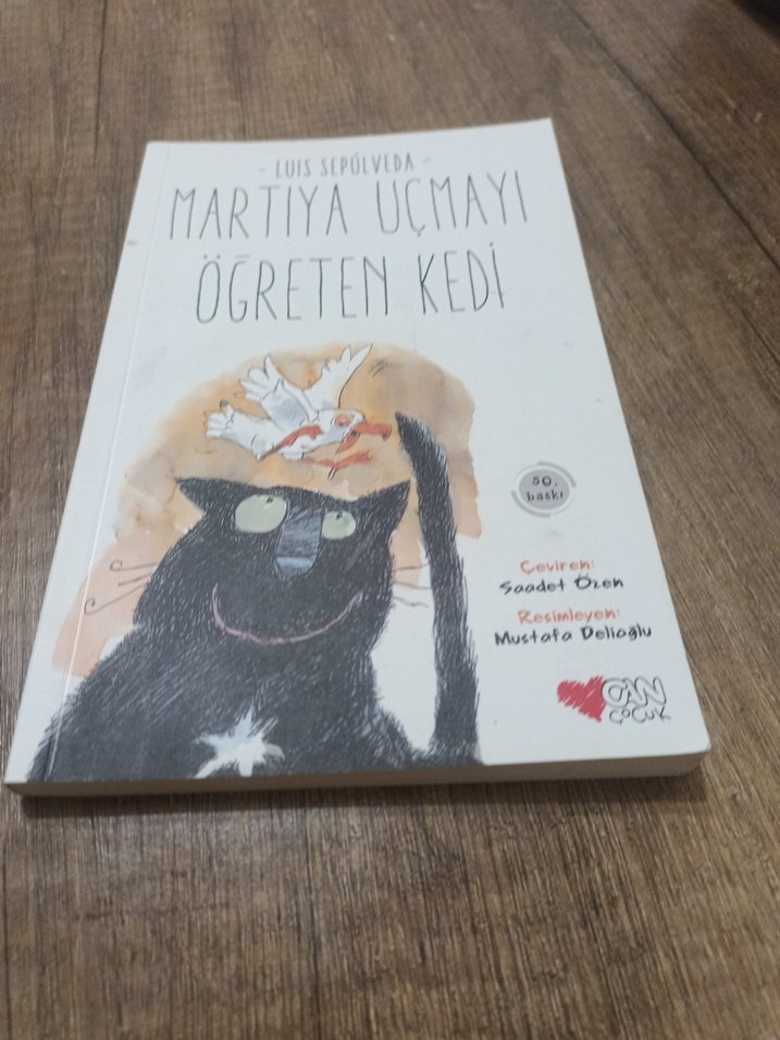 Luis Sepúlveda'nın "Martıya Uçmayı Öğreten Kedi" kitabı, Mustafa Delioğlu'nun çizimleri ve Saadet Önen'in çevirisiyle.