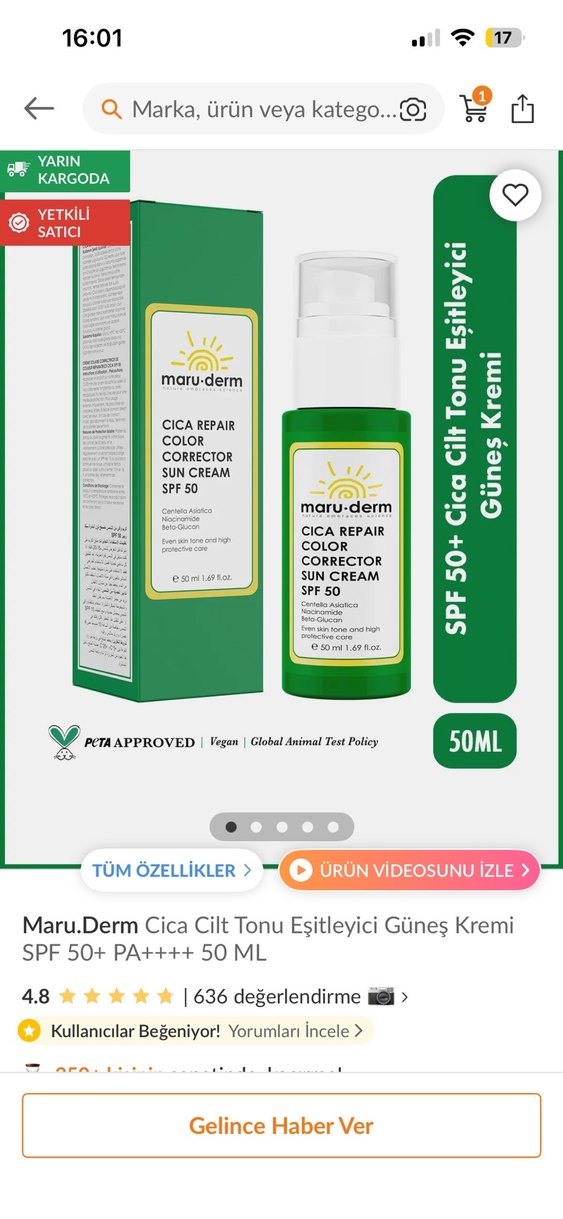 Maru.Derm Cica Repair Color Corrector Güneş Kremi SPF 50+, centella asiatica özlü, cilt tonunu eşitleyip yüksek koruma sağlar. Vegan ve PETA onaylı.