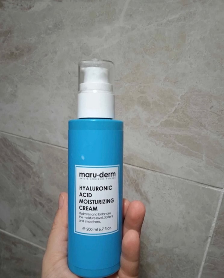 Maru.derm Hyaluronik Asit Nemlendirici Krem, cildin nem dengesini sağlar, yumuşatır ve pürüzsüzleştirir. 200 ml pompalı şişede sunulur.
