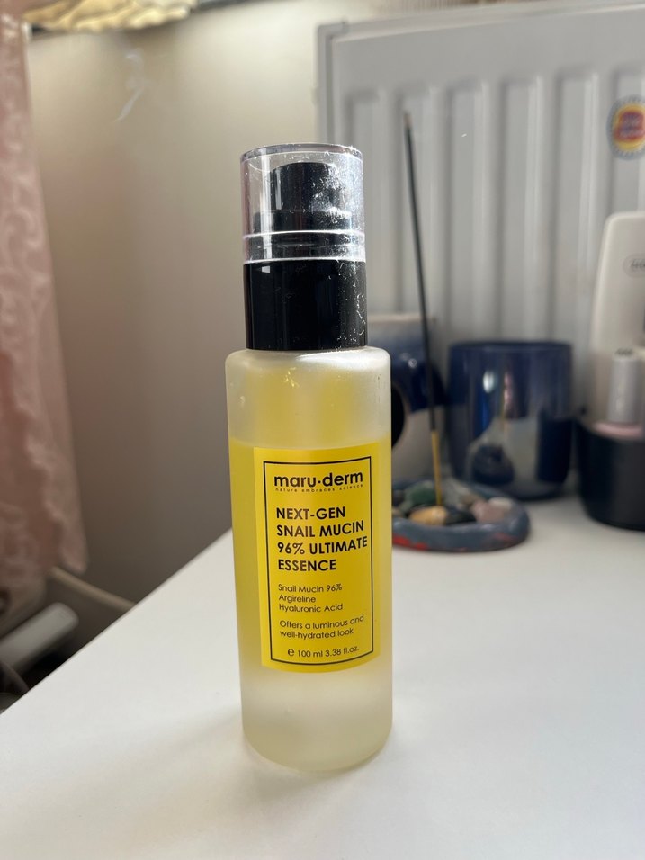 maru.derm Next-Gen Salyangoz Mucini %96 içeren, arginin ve hyaluronik asit ile cildi nemlendirip parlaklık kazandıran serum.