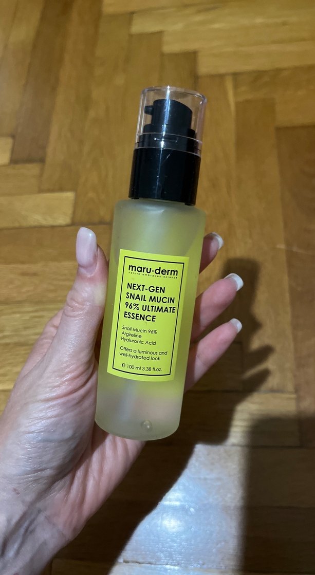 Maru-Derm Next-Gen Snail Mucin Essence, %96 salyangoz mukus ve hyaluronik asit içerir, cilde parlak ve derinlemesine nemli bir görünüm kazandırır. Hediye geldi hiç açmadım, kullanmayacağım için satıyorum