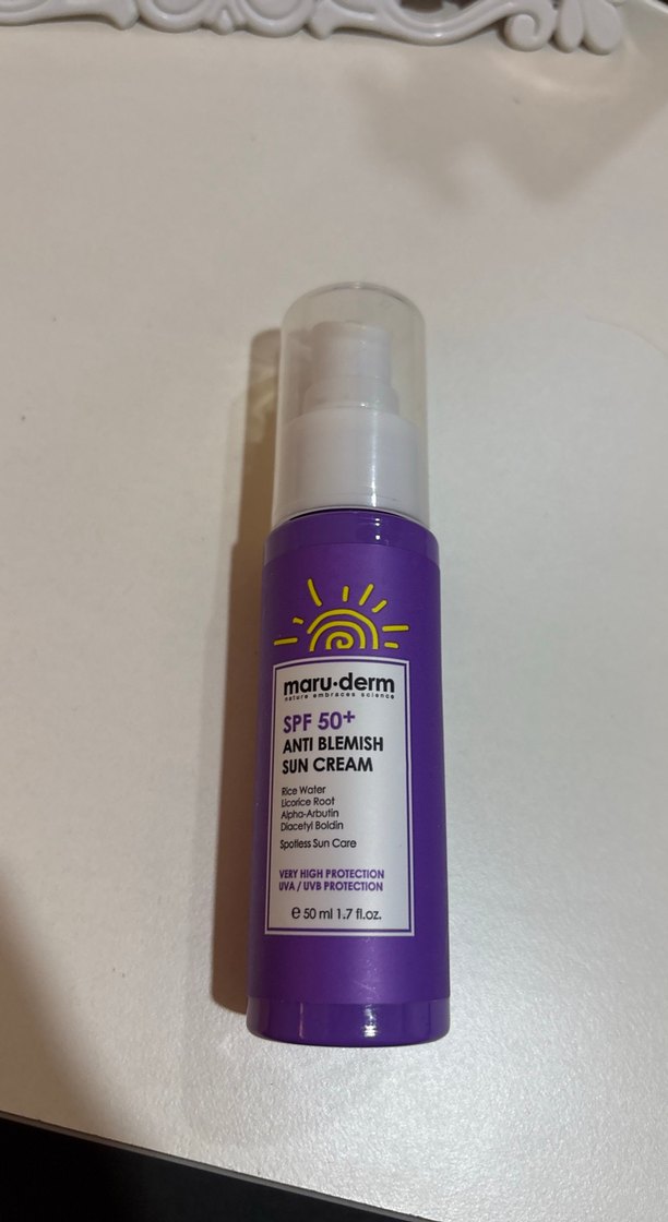 Maru-Derm SPF 50+ güneş kremi, UVA ve UVB ışınlarına karşı yüksek koruma sağlar ve leke karşıtı formülü ile cildi korur. 50 ml şişede sunulur. Çok çok az kullanıldı
