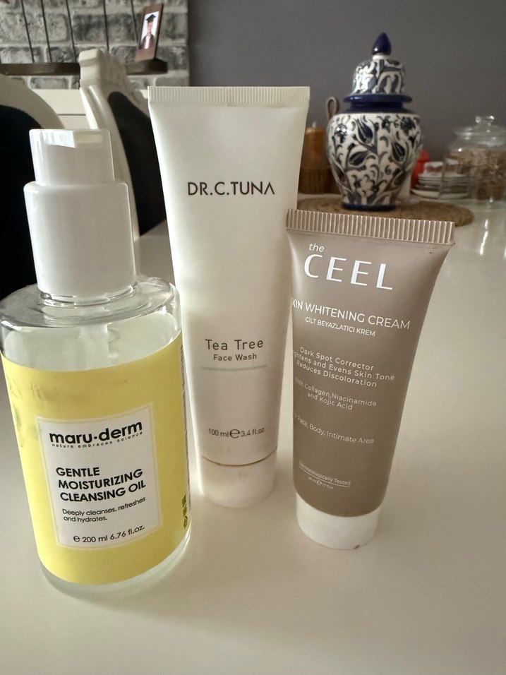 Maru-Derm nazik nemlendirici temizleyici yağ, Dr.C.Tuna Tea Tree yüz yıkama ve The Ceel cilt tonu düzelten beyazlatıcı krem içerir.