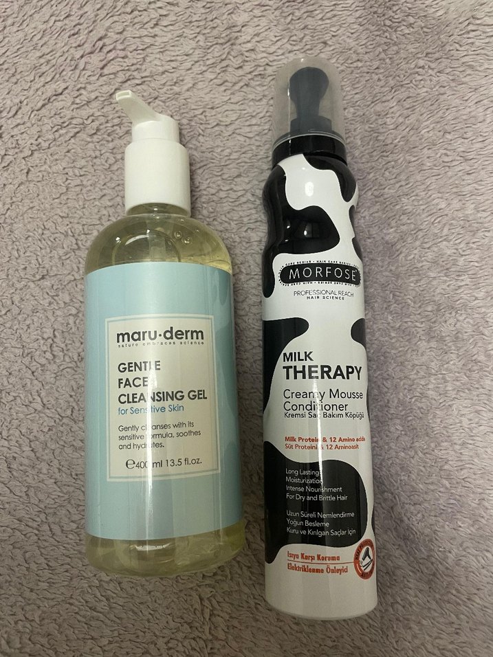 Maru Derm nazik yüz temizleme jeli, hassas cildi yatıştırır ve nemlendirir. Morfose Süt Terapisi krem köpük, kuru cildi besler ve korur. Her ikisi de yenidir 1-2 sefer deneme amaçlı kullanılmış 2-si beraber satıyorum çok uyguna