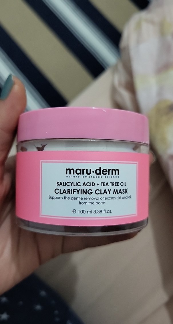 maruderm arındırıcı kil maskesi, salisilik asit ve çay ağacı yağı içerir, gözeneklerden fazla kir ve yağı temizlemeye yardımcı olur. 100 ml kutuda.