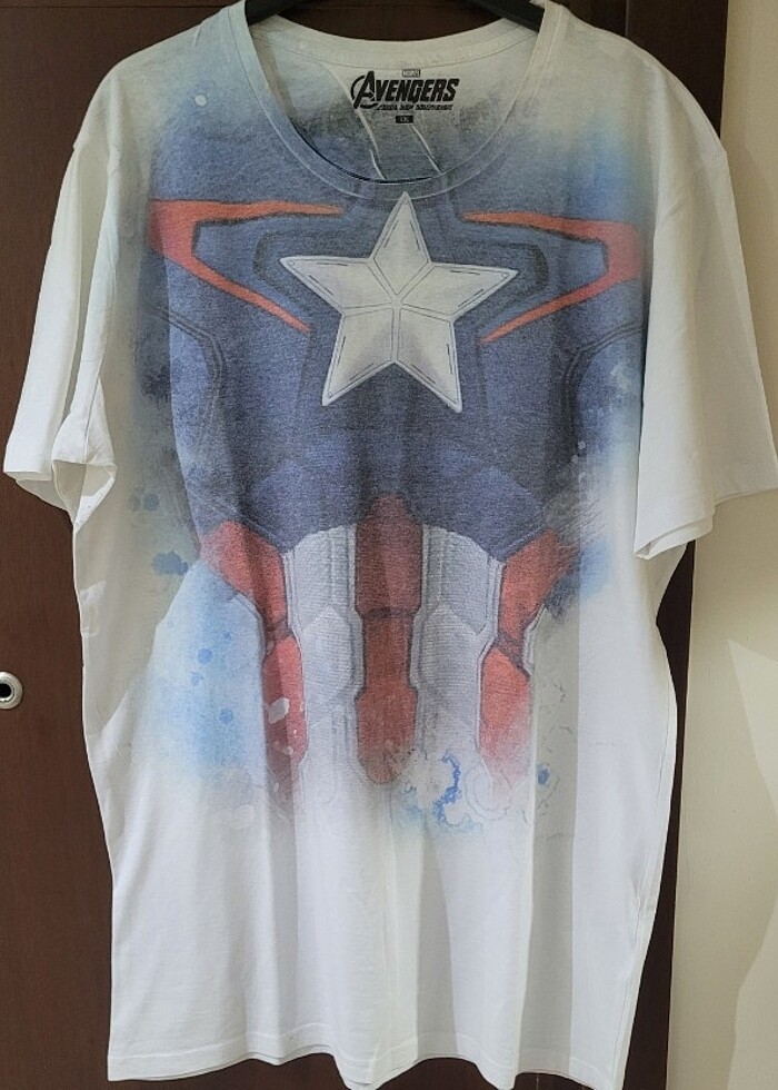 - Marvel'ın Avangers filmindeki Kaptan Amerika karakterinin t-shitrtüdür. - C&A marka, orijinal lisanslı üründür. - Tertemiz, bir iki kere giyilmiştir. Herhangi bir sökük, yırtık vs. kesinlikle yoktur. - Sağ kol ucunda, belli belirsiz, küçük sarı bir lekesi var. Avuç içinden küçüktür. Fotosunu koydum. - P pamuk P polyesterdir. - Diğer ilanlarıma da bakabilirsiniz.