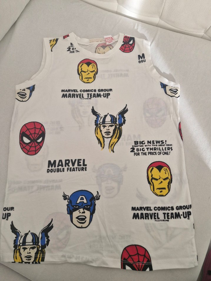 Kolsuz, dar kesim ve bisiklet yaka olan bu erkek çocuk tişörtü, sentetik kumaştan üretilmiş olup renkli Marvel çizgi roman baskılarıyla dekore edilmiştir. ♂️