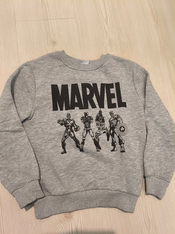 Gri renkli, uzun kollu ve yuvarlak yakalı erkek sweatshirtü. Marvel baskılı, rahat kesim.. ♂️