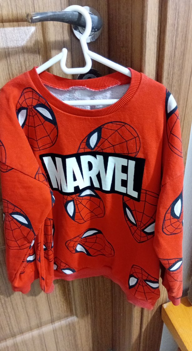 Kırmızı renkli, Marvel baskılı, yuvarlak yaka ve uzun kollu erkek çocuk sweatshirtü. Yumuşak ve sıcak kumaştan, bol kesim ve renkli desenlere sahip. ️