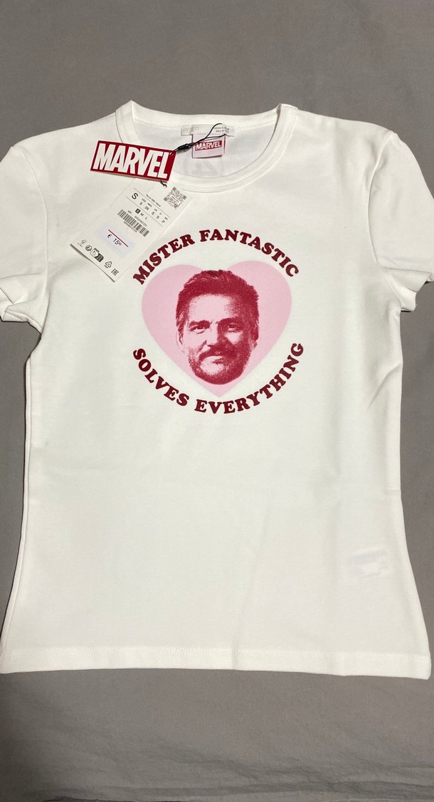 Kısa kollu, bisiklet yaka ve Marvel baskılı kız tişörtü. Yumuşak kumaştan, pastel tonlarda ve dar kesimlidir. S beden
