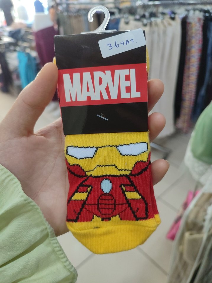 Sarı ve kırmızı tonlarda baskılı Marvel süper kahraman desenli, renkli erkek çorabı. Rahat ve yumuşak kumaştan üretilmiştir.