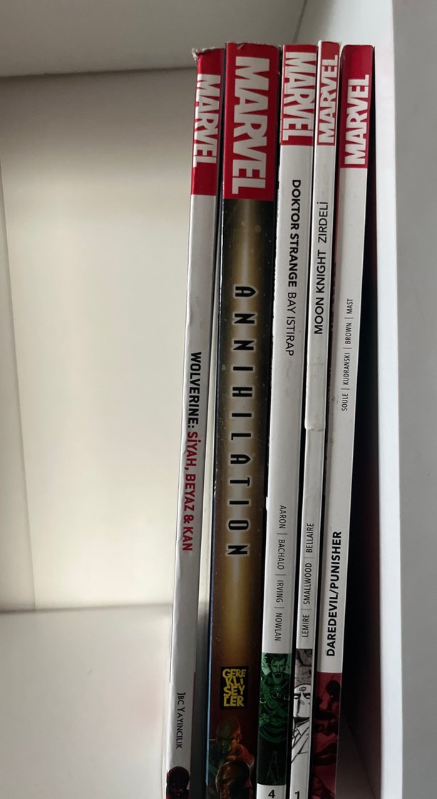 Annihilation, Doktor Strange, Wolverine: Siyah, Beyaz & Kan, Moon Knight ve Daredevil/Punisher içeren Marvel çizgi roman seti. Hepsi kusurlu üründür. Kusurları fotoğraflarda gösterilmiştir.