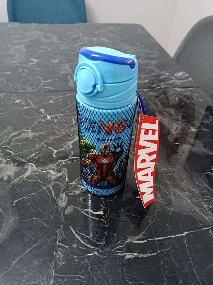 Renkli mavi termosta Marvel desenleri bulunur. Güvenli kapak ve kolay tutuş sağlayan dokulu yüzeye sahiptir.
