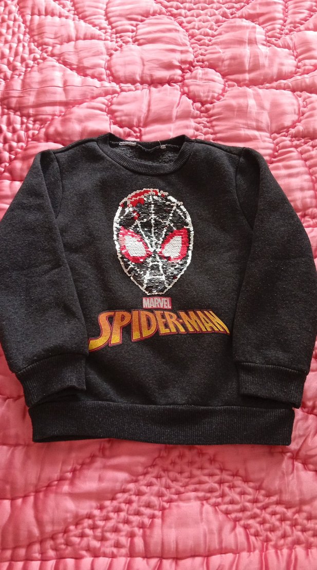 Uzun kollu, bisiklet yaka, yumuşak ve örgü dokulu kumaştan yapılmış Marvel Örümcek Adam baskılı, fitted kesim koyu gri erkek çocuk sweatshirtü. ️