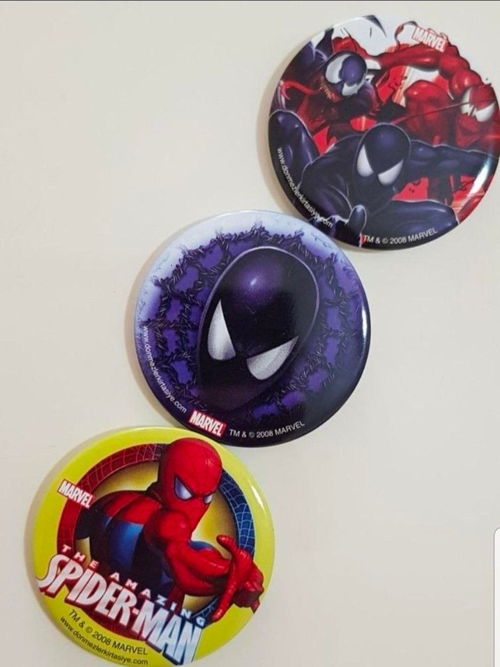 Marvel Spiderman Rozet 3'lü. Adet fiyatı 100 TL'dir. #rozet #vintage #spiderman