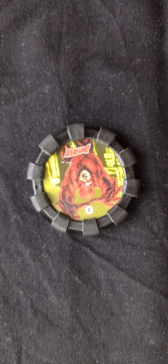 Siyah renkli, Marvel temalı canlı renkler içeren yuvarlak şekilli aksiyon figürü parçası. Ortasında detaylı karakter resmi bulunur.