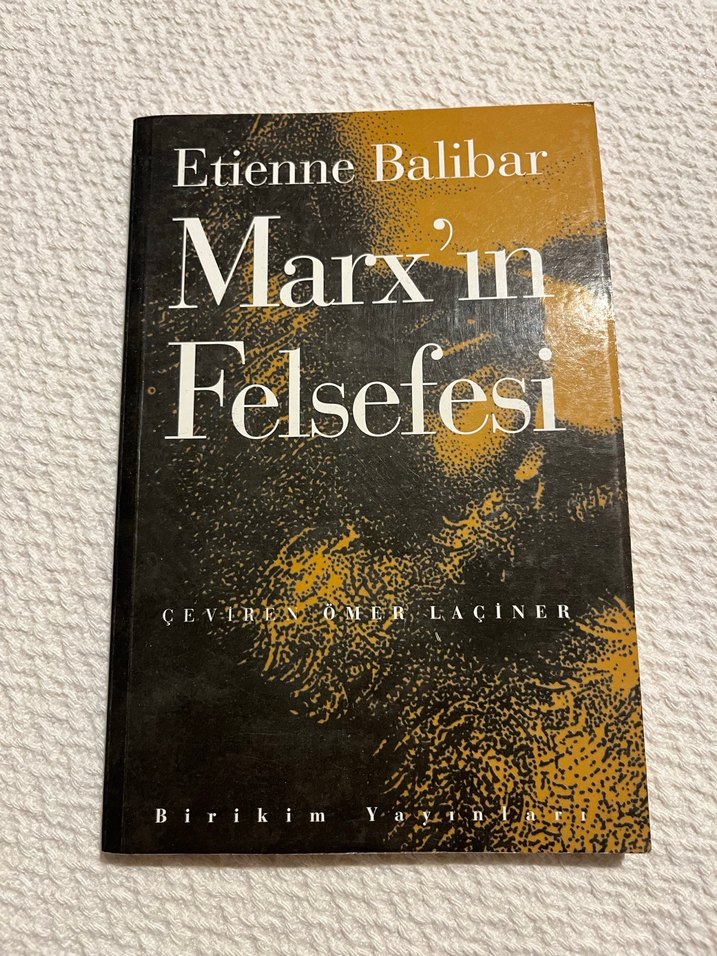 Uzun süredir kütüphanede, kapağında kağıt çatlakları var bunun dışında bir kusuru yoktur Etienne Balibar'ın Marx'ın felsefesini ele aldığı, Ömer Laçiner tarafından çevrilen ve Birikim Yazıları tarafından yayımlanan kitap.